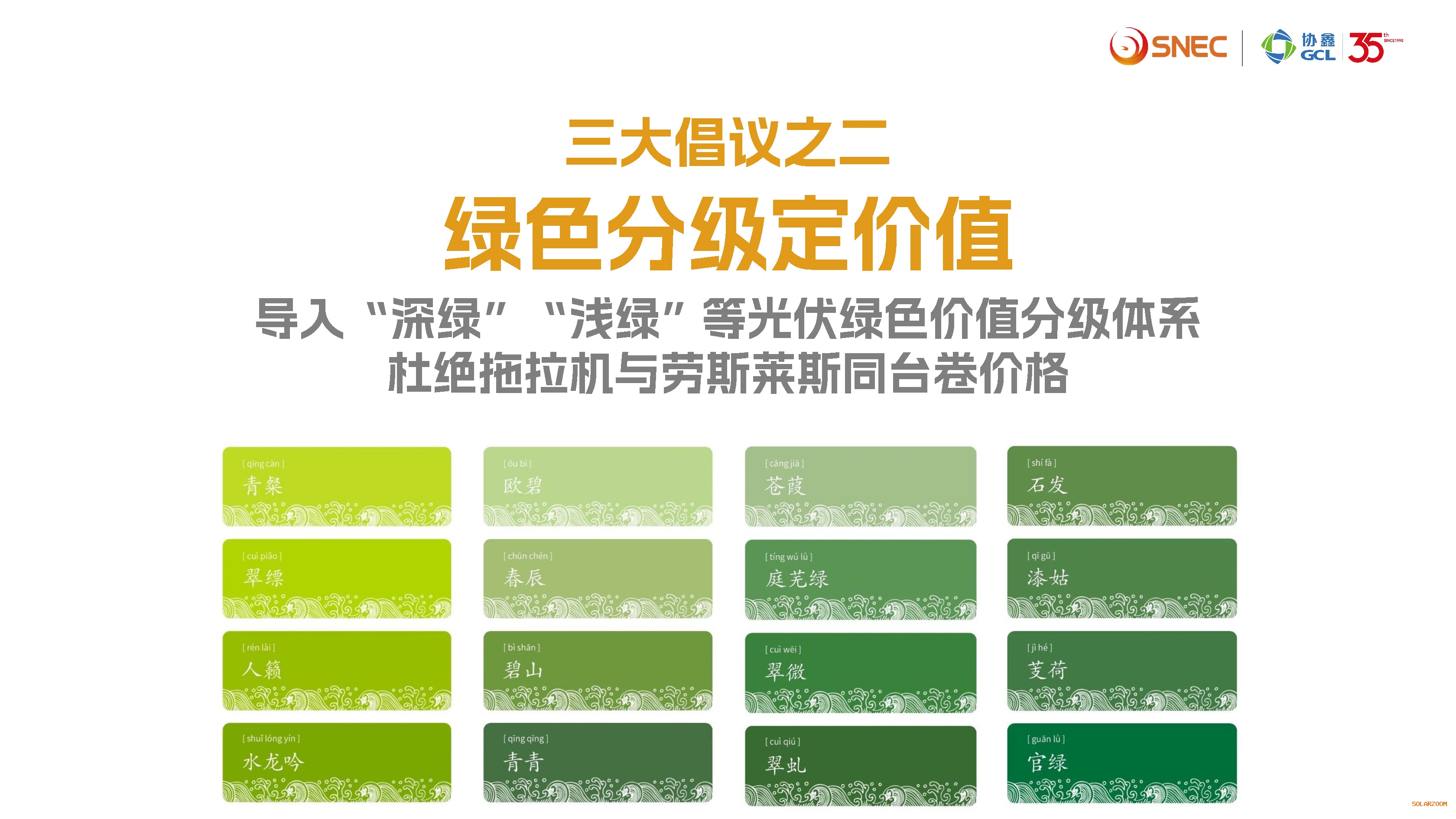 二是绿色分级定价值✿✿✿ღ。导入“深绿”“浅绿”等光伏绿色价值分级体系✿✿✿ღ,杜绝拖拉机与劳斯莱斯同台卷价格✿✿✿ღ,让具有高科技✿✿✿ღ、高效能✿✿✿ღ、高质量特征✿✿✿ღ,特别是在碳值方面领先的新技术✿✿✿ღ、新产品✿✿✿ღ、新范式唱主角✿✿✿ღ。推出有差别的绿色融资✿✿✿ღ、碳金融✿✿✿ღ、IPO和出口退税待遇等绿色分级支持政策✿✿✿ღ。将全周期碳值纳入光伏发电并网的前置条件✿✿✿ღ,打破高能耗的生产函数组合✿✿✿ღ,摆脱外界对光伏“先耗能✿✿✿ღ,后节能”的固有印象✿✿✿ღ。扩大绿证消费场景与消费比例✿✿✿ღ,完善碳足迹核算体系与数据库建设✿✿✿ღ、ESG评级机制等✿✿✿ღ,推动国际衔接✿✿✿ღ、互认互信✿✿✿ღ,让中国光伏的低碳技术标准成为全球绿色贸易规则的重要组成部分✿✿✿ღ。